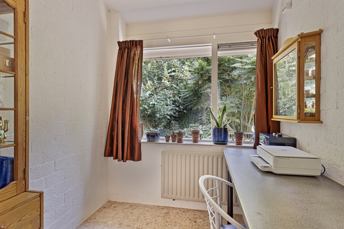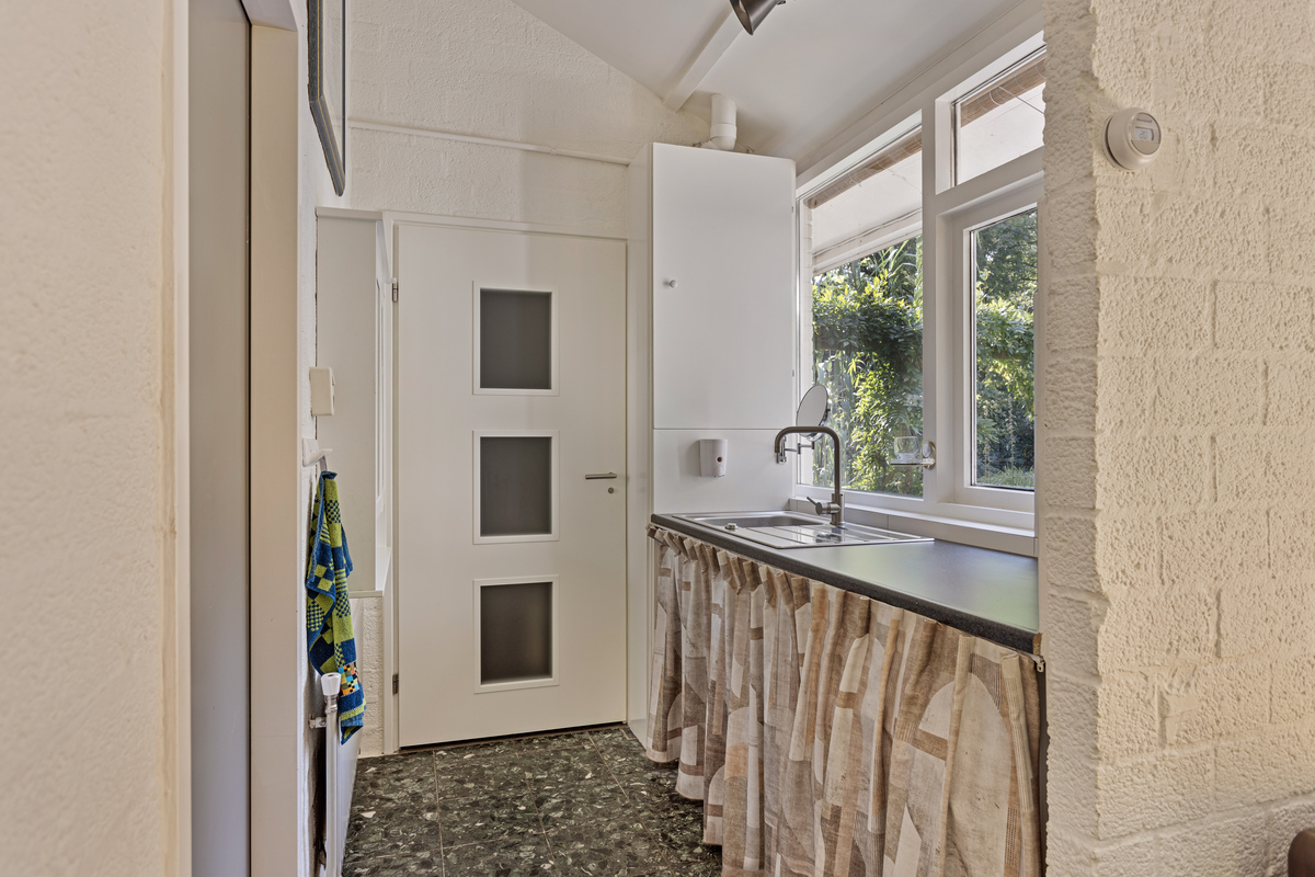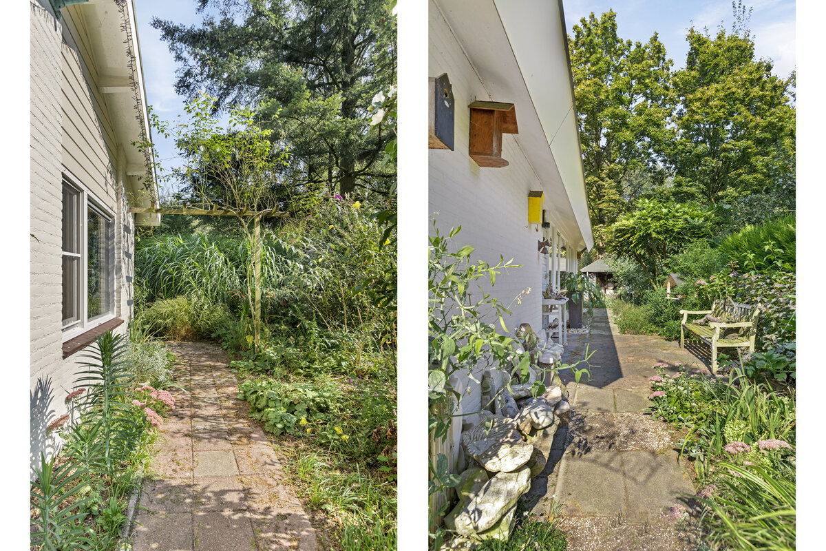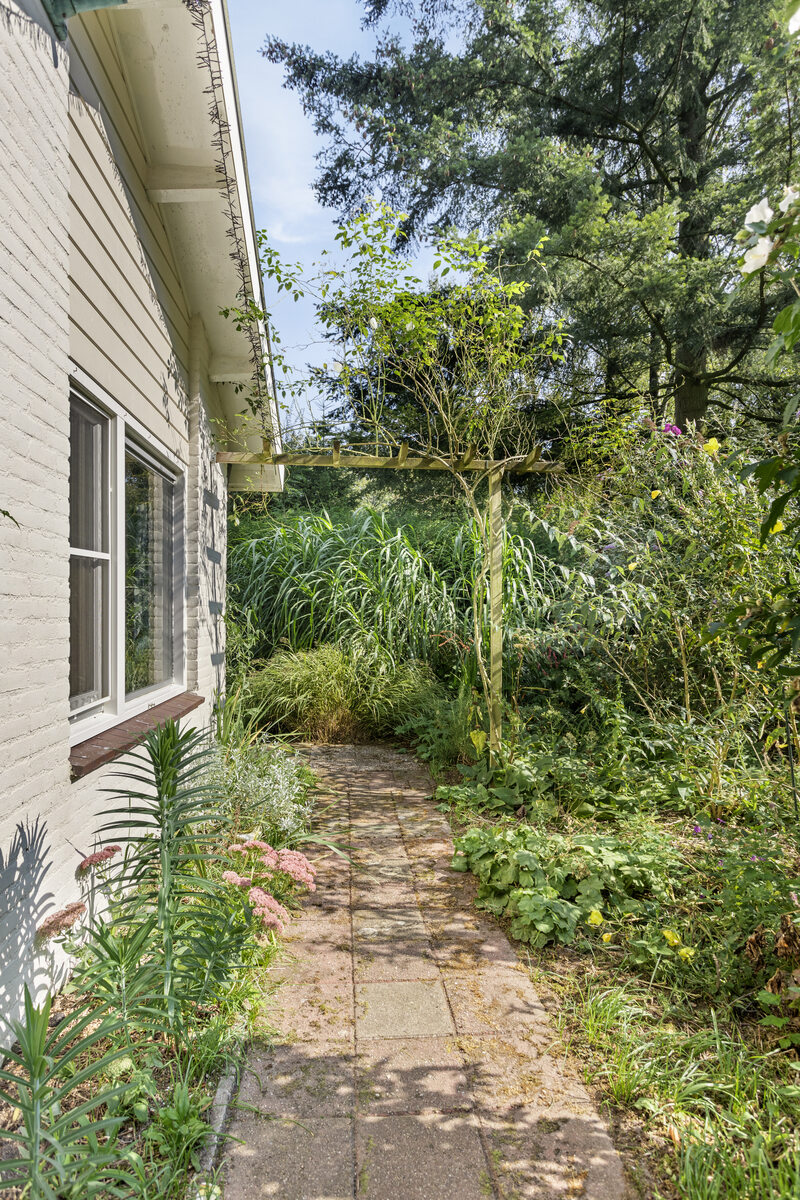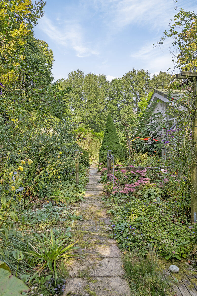 Entree (deze ruimte is thans in gebruik als inloop kledingkast) met moderne meterkast, hoofdslaapkamer met zicht op de tuin, doorgang met wastafel en opstelplaats voor witgoed, naar de badkamer ( 2022) met inloopdouche en wc en vloerverwarming. CV-HR combi ketel (2019). Praktisch ingedeelde halfopen keuken (2014) met onder en bovenkasten, een inductiekookplaat, een oven, een combi magnetron/oven en warmhoudlade, vaatwasser, koelkast en granieten aanrechtbladen. Twee slaapkamers. Royale woonkamer met zuid, west en noord zicht naar de mooie tuin. Een schoorsteen met houtkachel zorgt voor extra sfeer en warmte. Op de zuid/westzijde is een flink terras. Aan de achterzijde van deze woning is een aanpandige bergruimte. Hier is nog een opstelplaats voor witgoed, een grondwaterpomp en er hangt een urinoir aan een muur. Voor uw tuingereedschap is er een tuinberging. Een overdekt prieel maakt de tuin af.