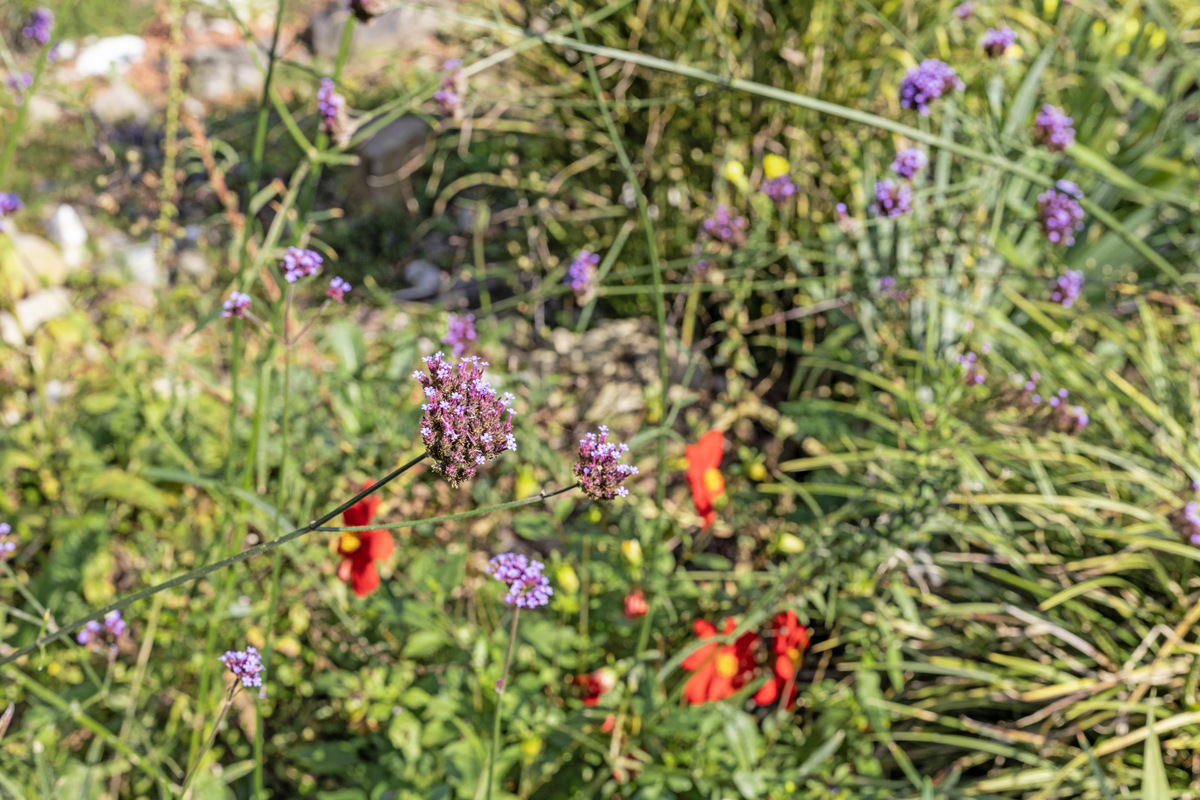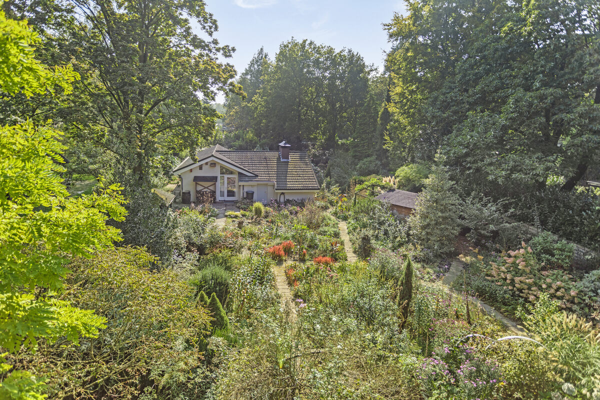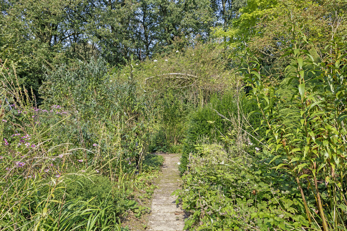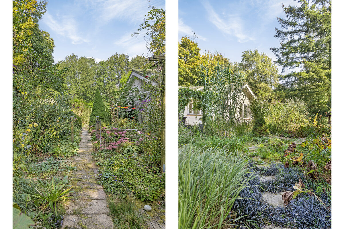Vrije tuin met fijne zitplekken. In deze tuin tref je bijzondere bloeiende planten aan.