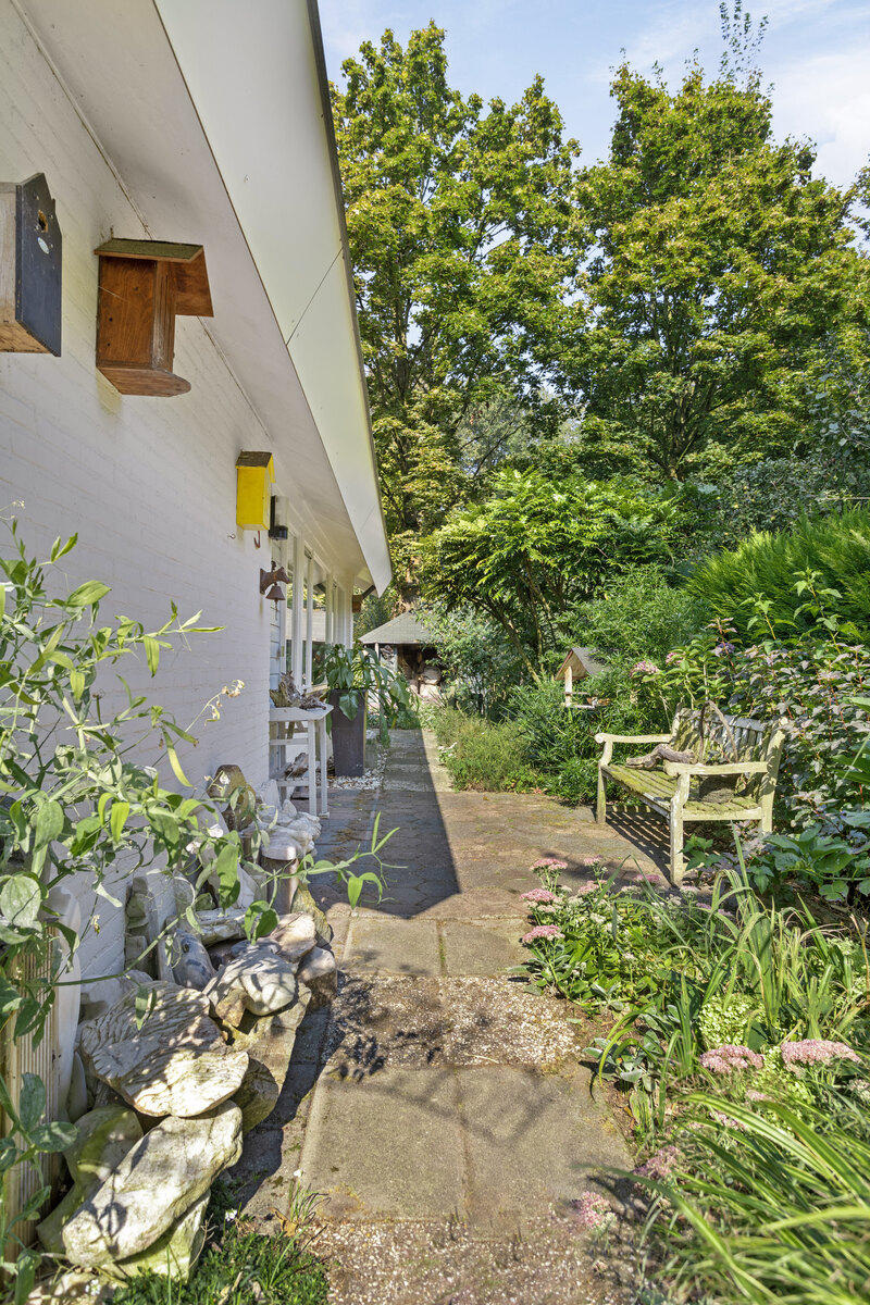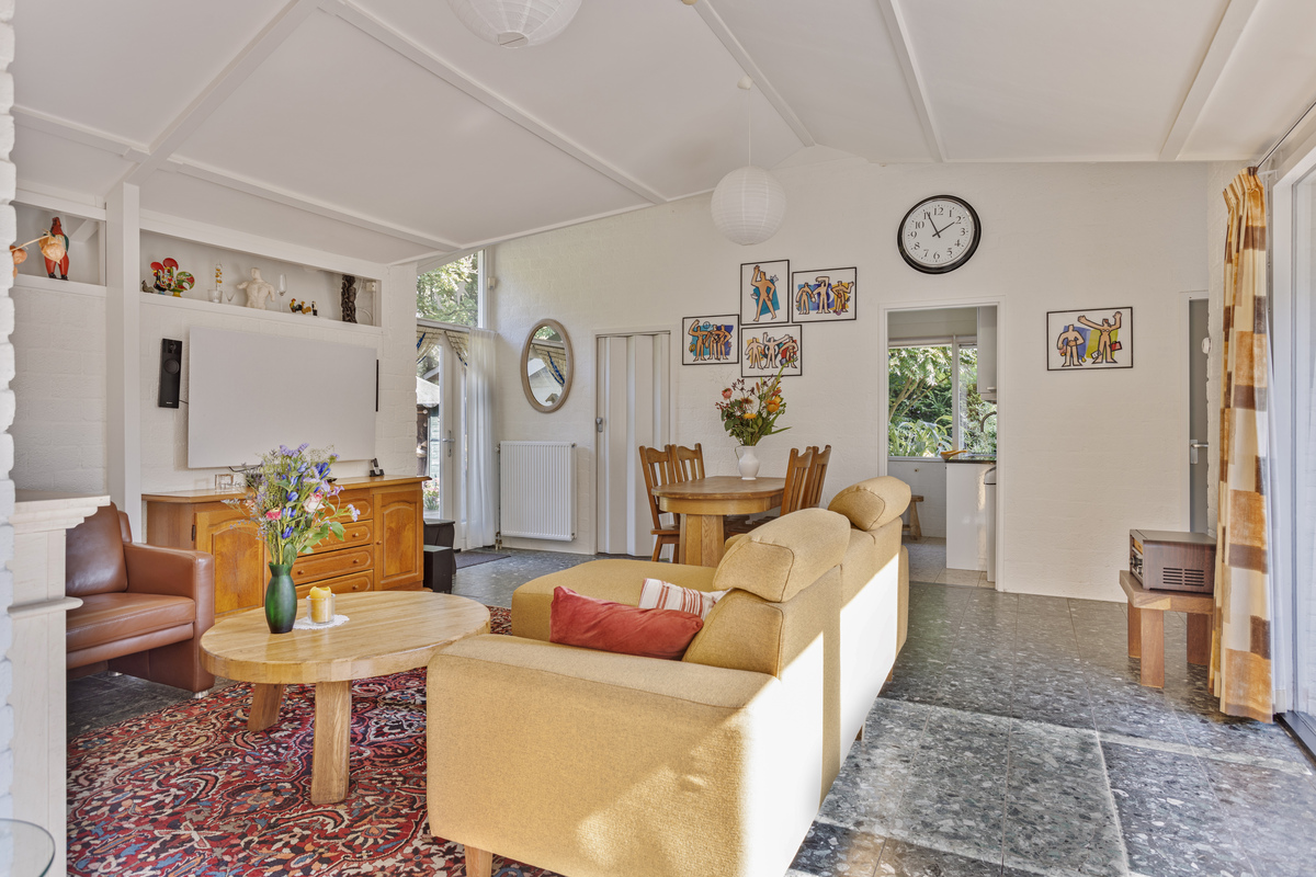 Deze royale bungalow heeft 4 kamers ligt in een fraaie bloementuin.