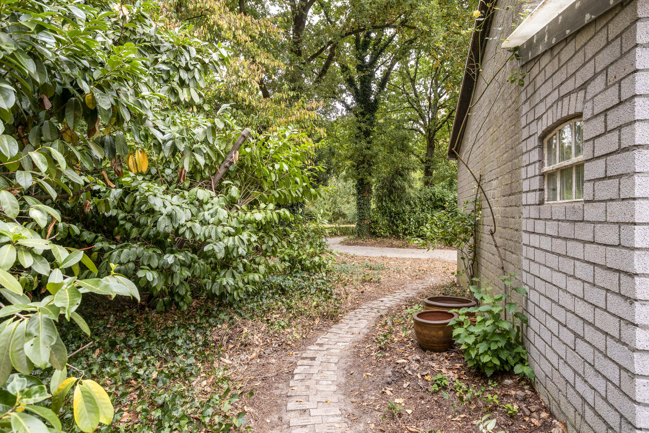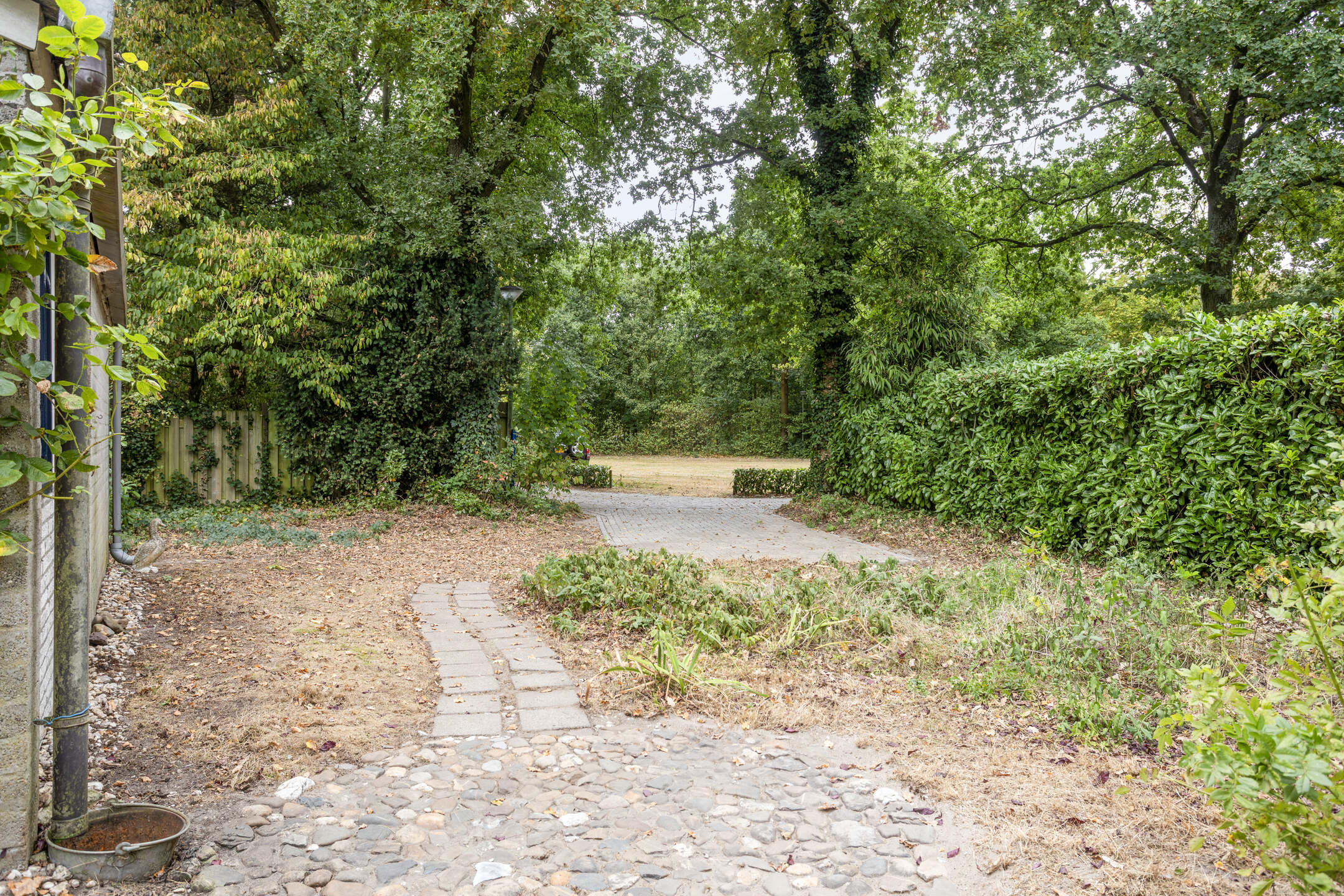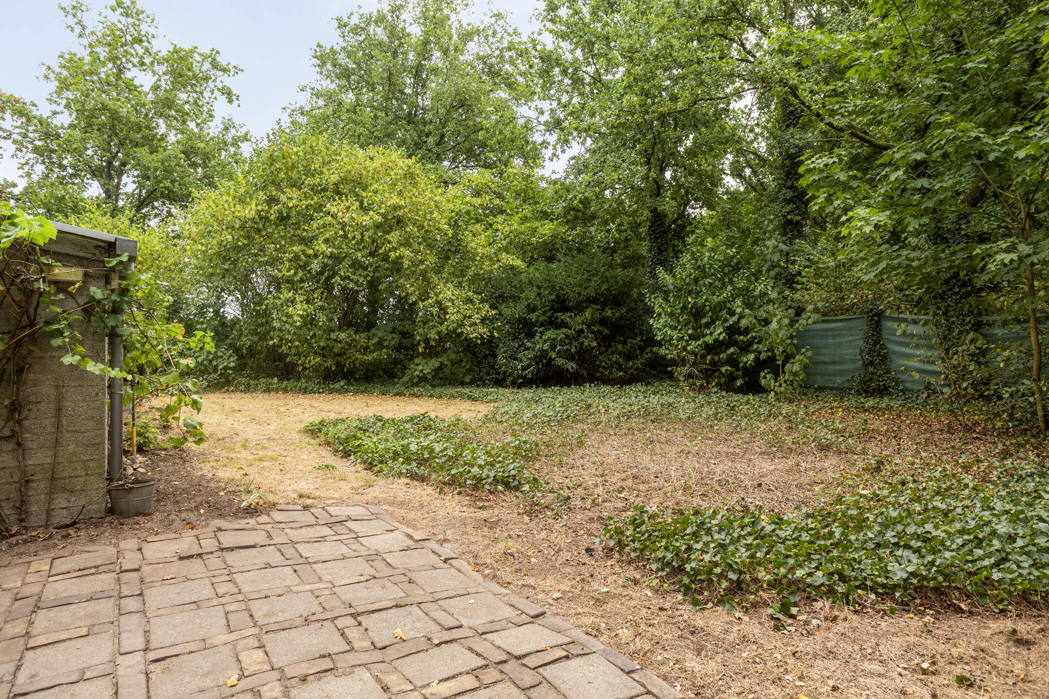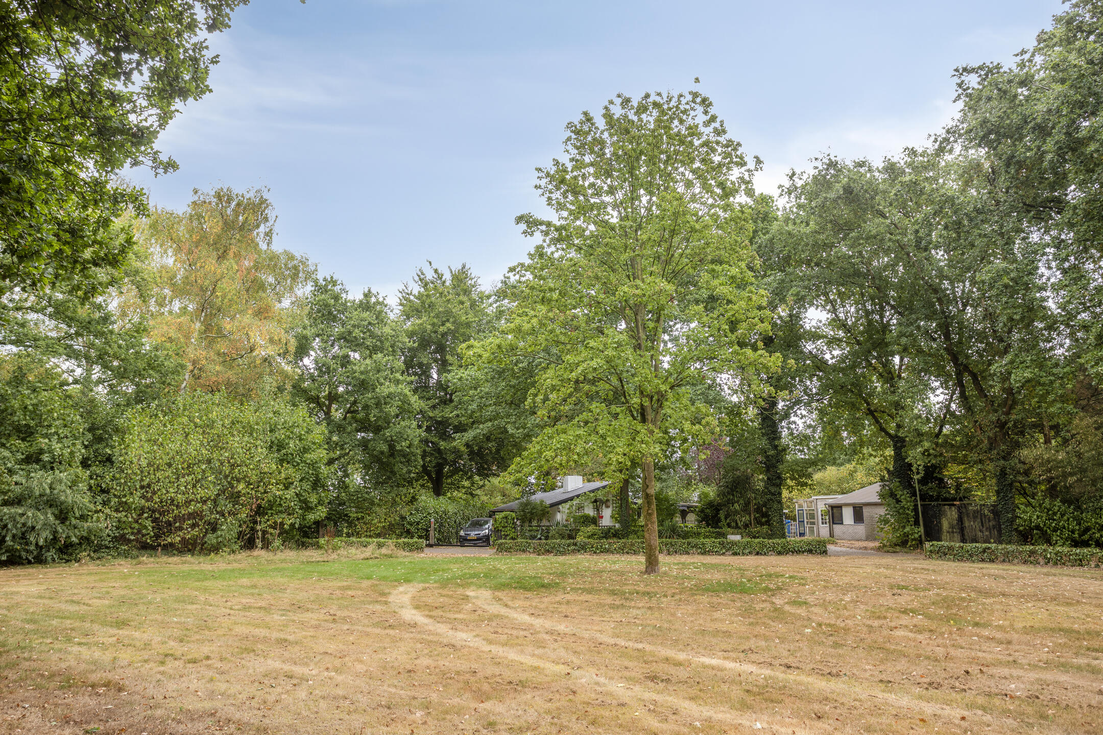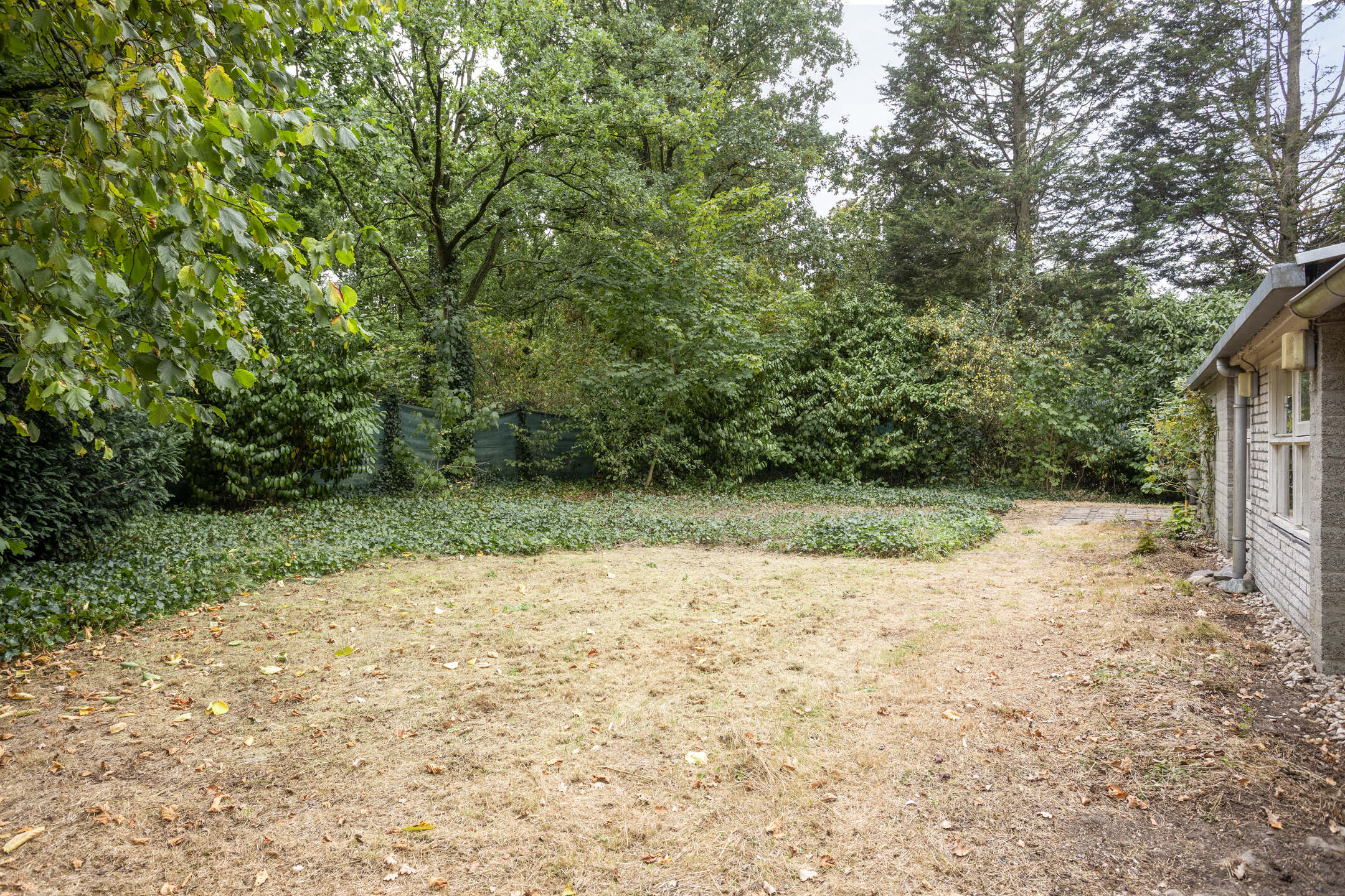 Vrije bostuin met veel privacy, zonuren en fijne zitplekken. Oprit met parkeerplaats op eigen perceel.