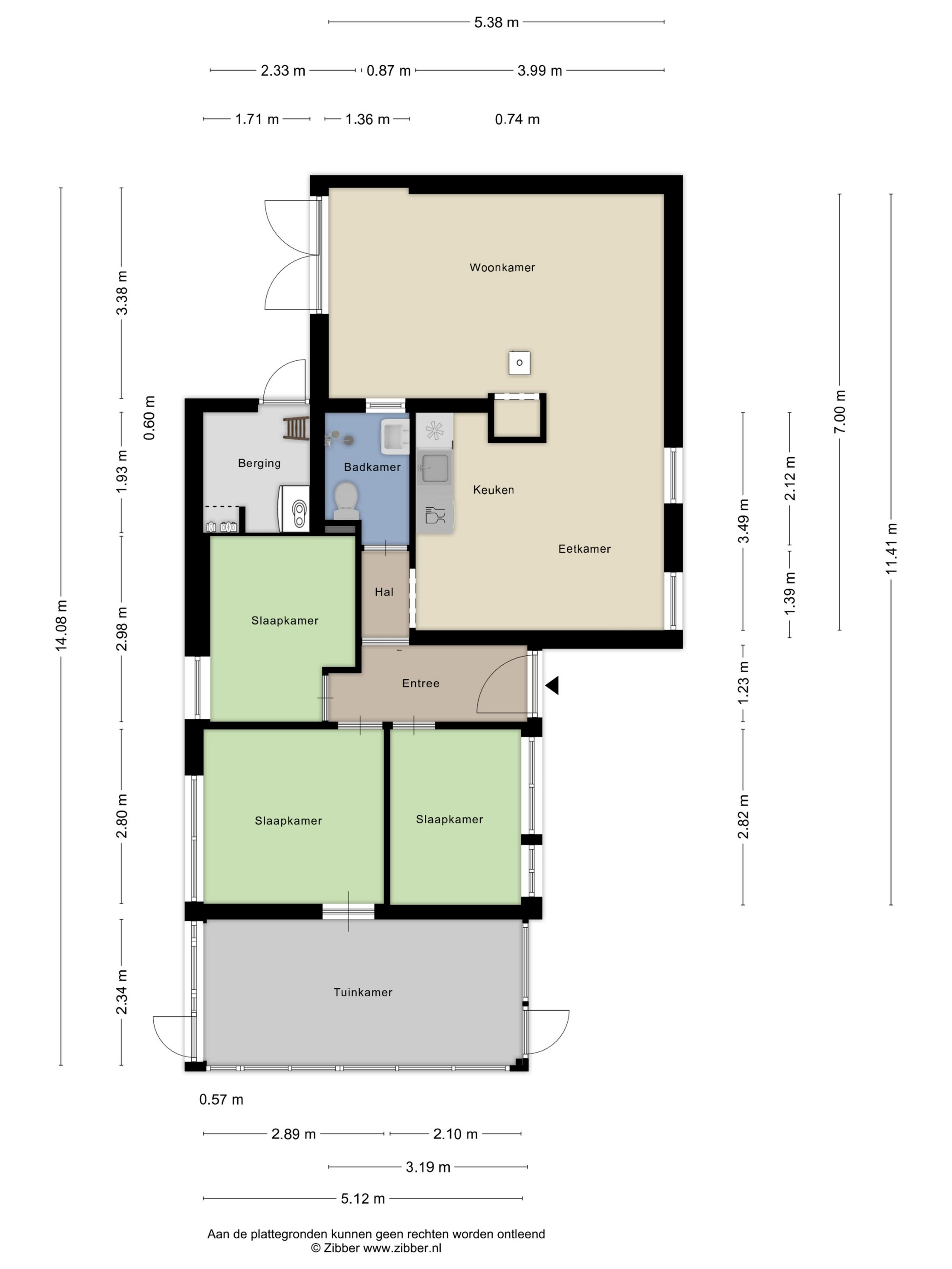 Woningoppervlak inclusief de serre/tuinkamer is ca. 76 m².
